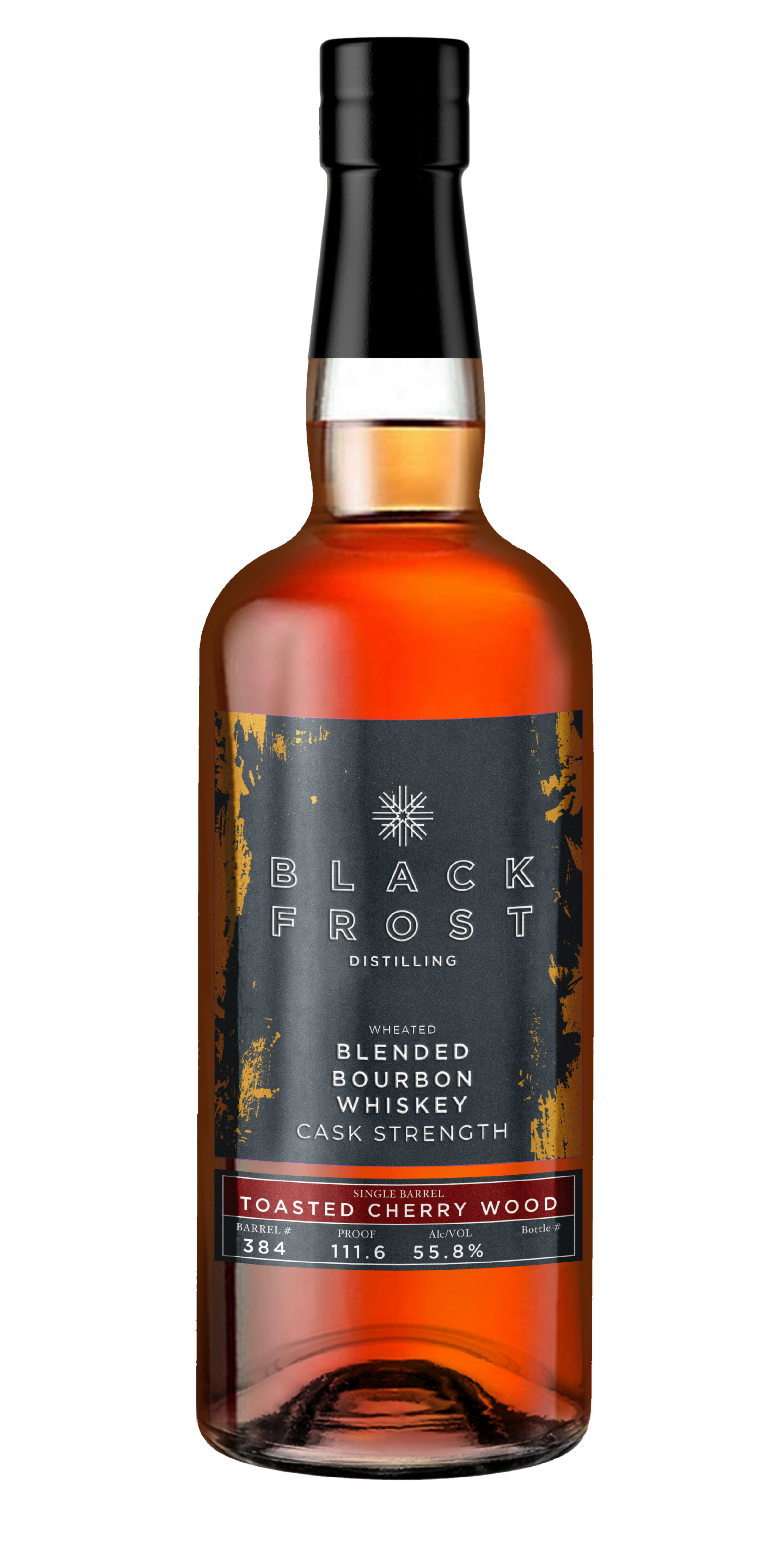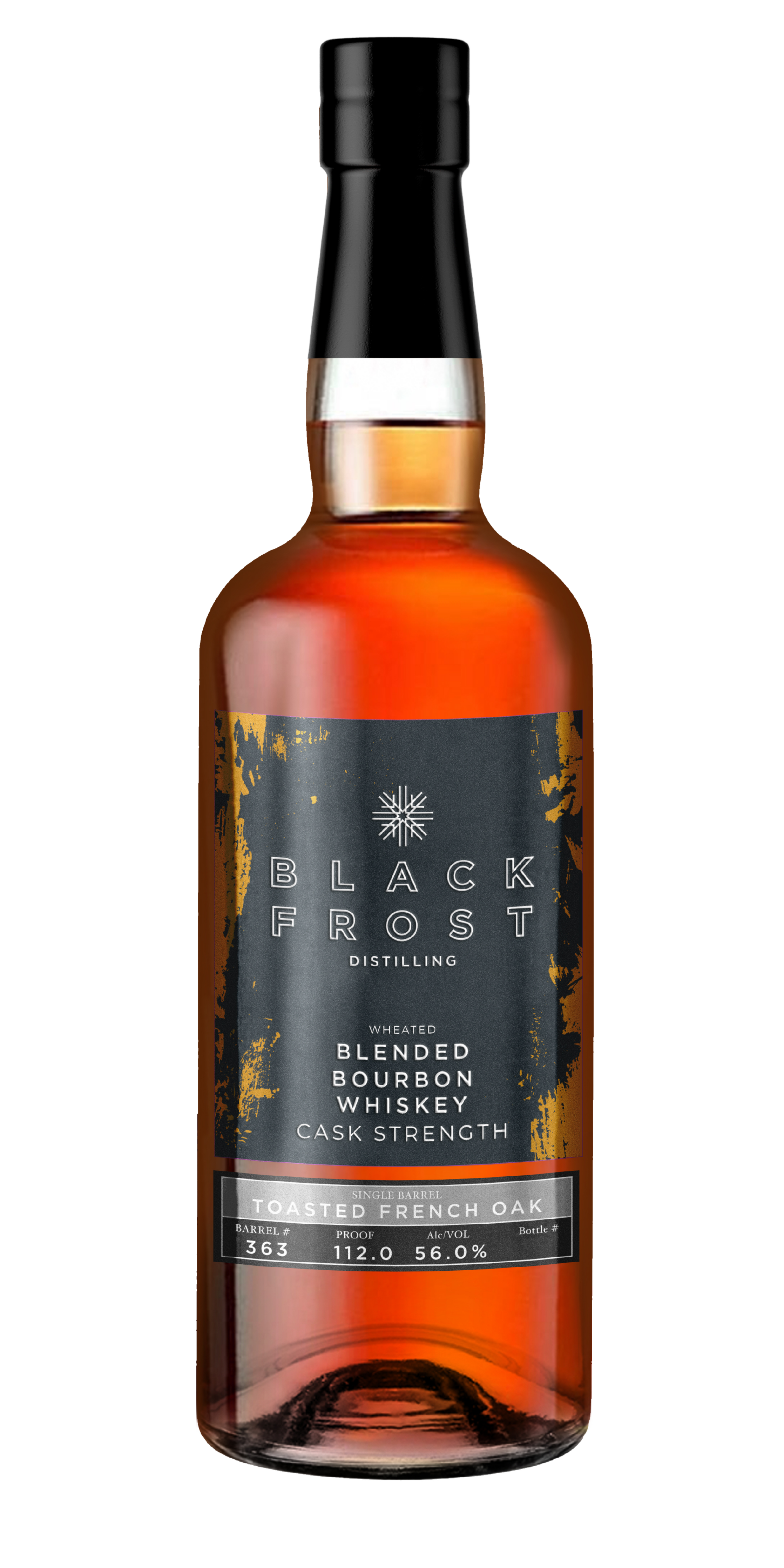 Cask Strength Blended Bourbon Whiskey is an ongoing, limited release from Black Frost. Each grain is mashed, fermented, distilled, and barrel aged individually to bring out the best that each grain has to offer. We then hand select aged, single grain whiskies from our climate amplified rick house, blend them together to create our blended bourbon whiskey, and release it at cask strength.